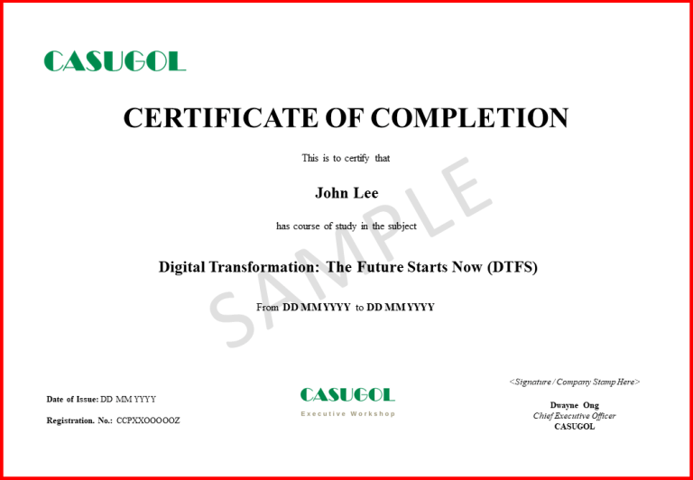 All certificates issued by CASUGOL are to individuals who have successfully completed CASUGOL Certification Programs / Executive Workshops and have fulfilled all requirements by demonstrating proficiency in applying the knowledge and skills acquired.